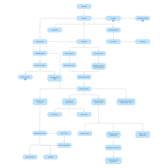 Le parcours utilisateur est conçu pour donner une vision globale d’un bien en quelques étapes, en priorisant les informations les plus utiles dès l’entrée dans l’interface.