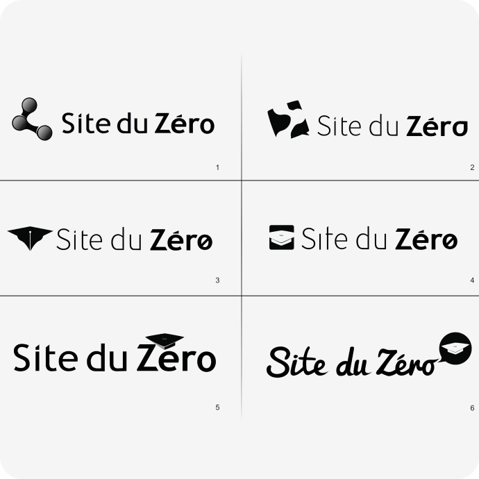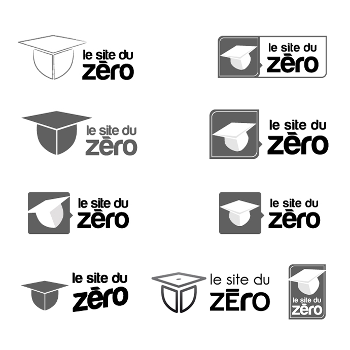Dans mes archives, j’ai retrouvé les recherches et propositions réalisées pour le logo de la V3 de la plateforme. Ce travail est le résultat de nombreux échanges et d’une réflexion collective autour de l’évolution de l’identité du Site du Zéro et du Livre du Zéro.