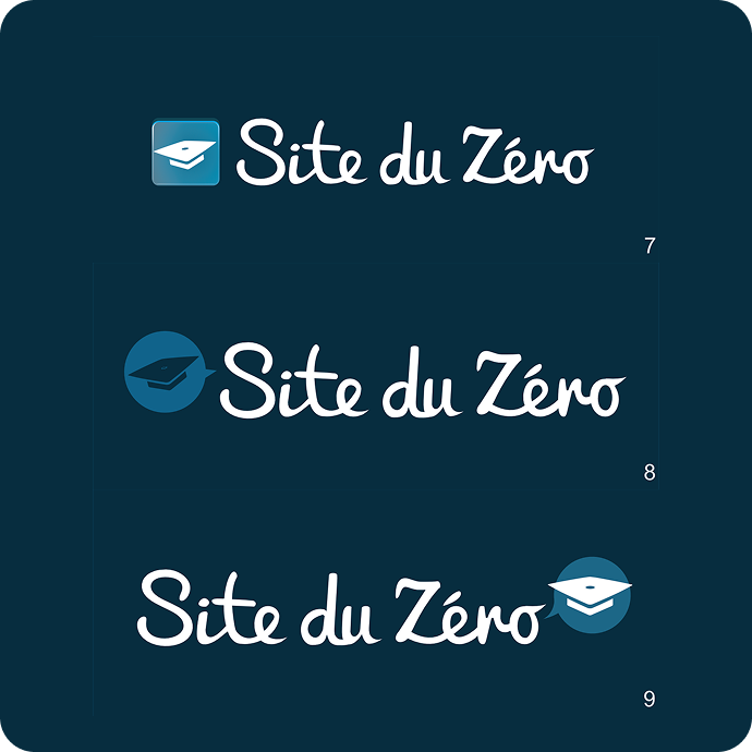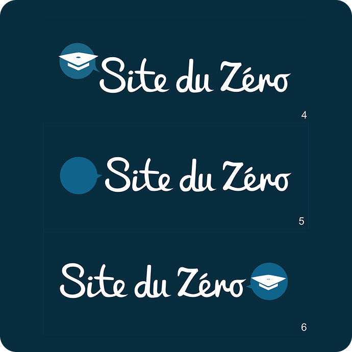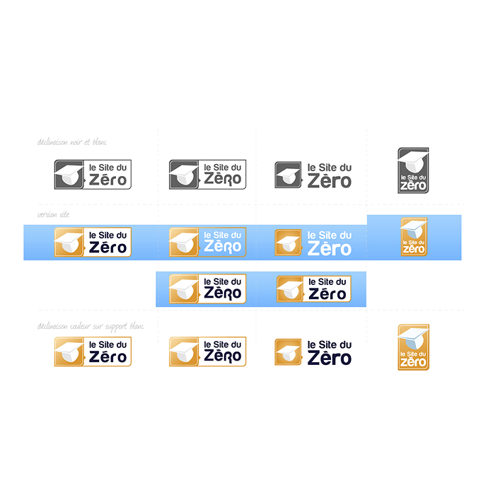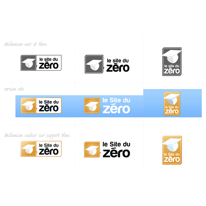 Pour ces versions finales (V3) du logo (Site du Zéro et Livre du Zéro) seules deux déclinaisons ont été retenues : une version verticale et une version horizontale.