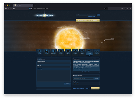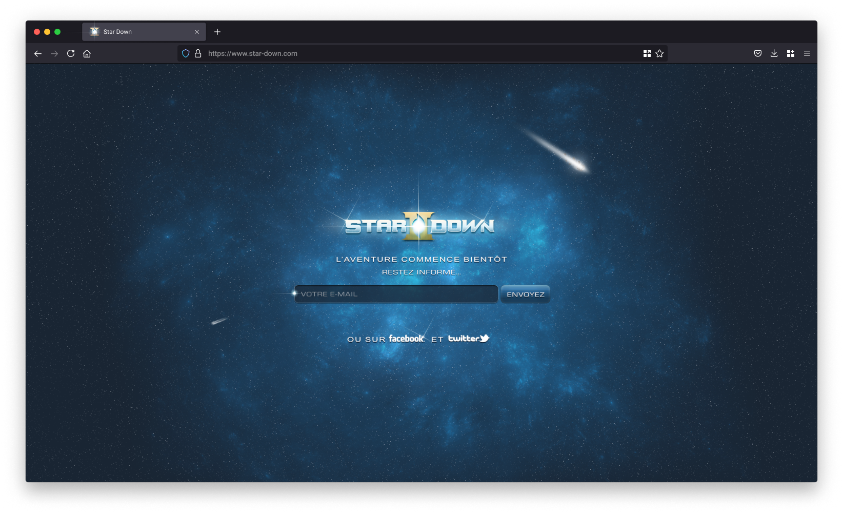 Conception de la landing page du jeu, intégrant un formulaire d’inscription par e-mail et accès aux réseaux sociaux pour permettre aux utilisateurs de suivre l’évolution du projet.