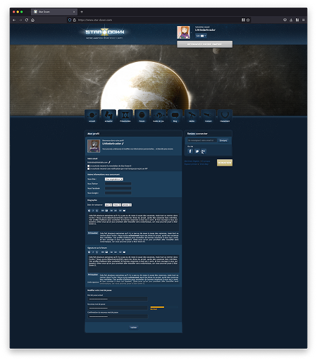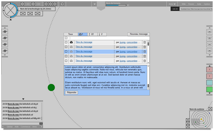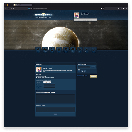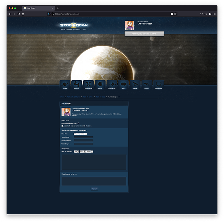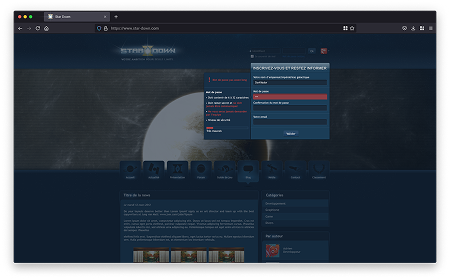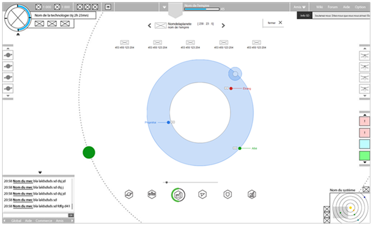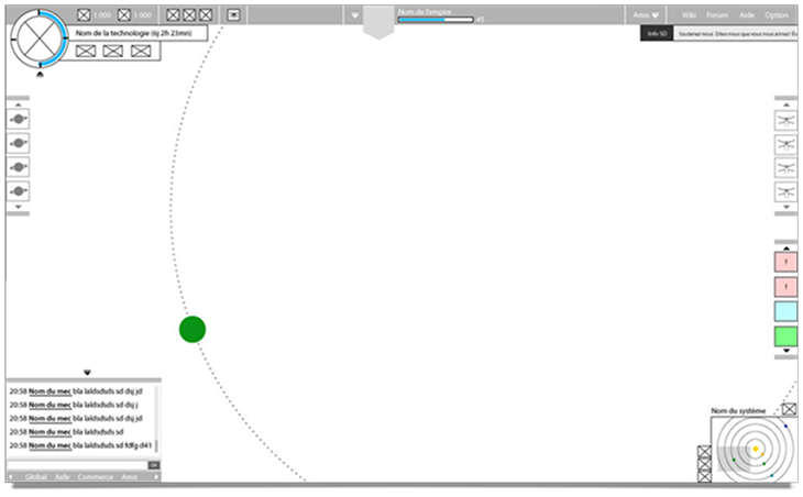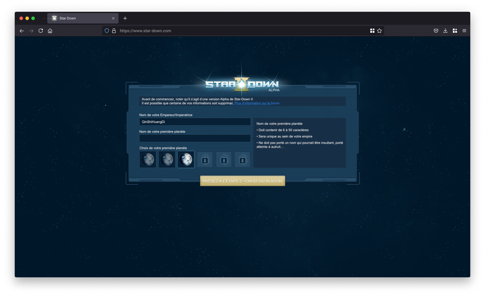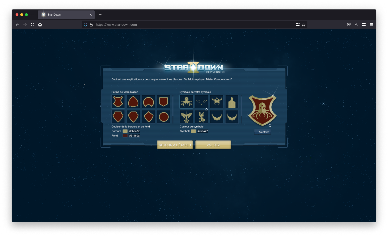 À la création du compte, une première étape permettait à l’utilisateur de personnaliser son empire à travers le nom du dirigeant, les caractéristiques de la planète initiale et la composition du blason.