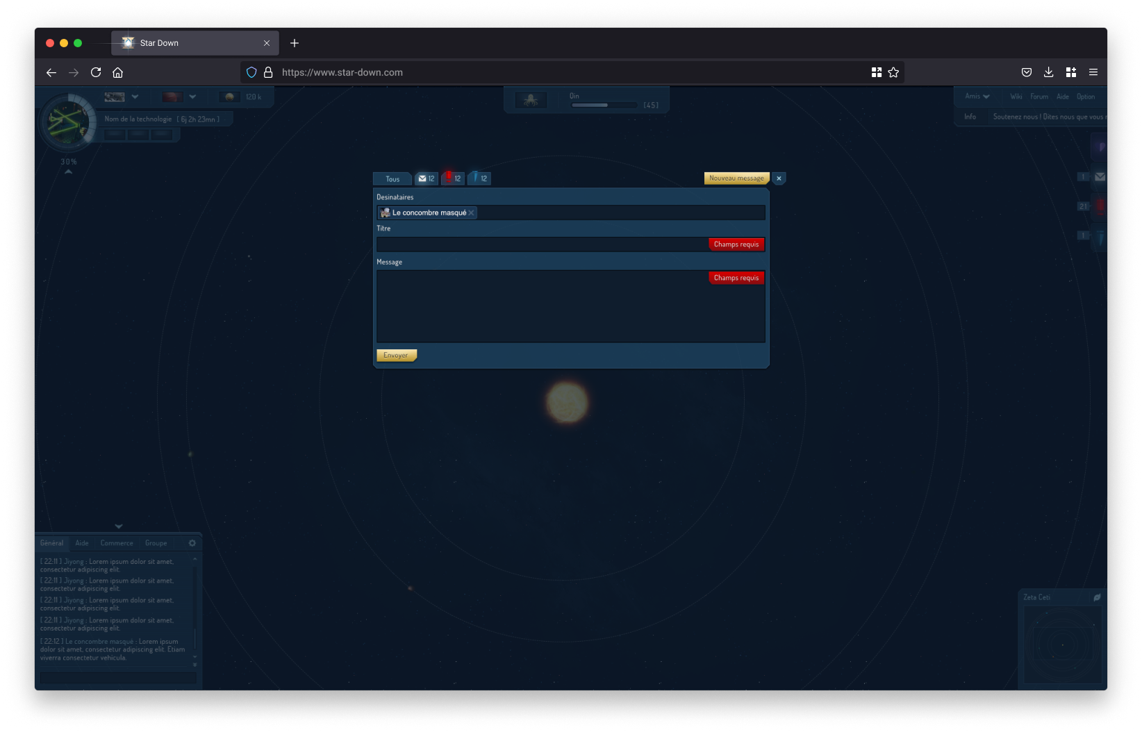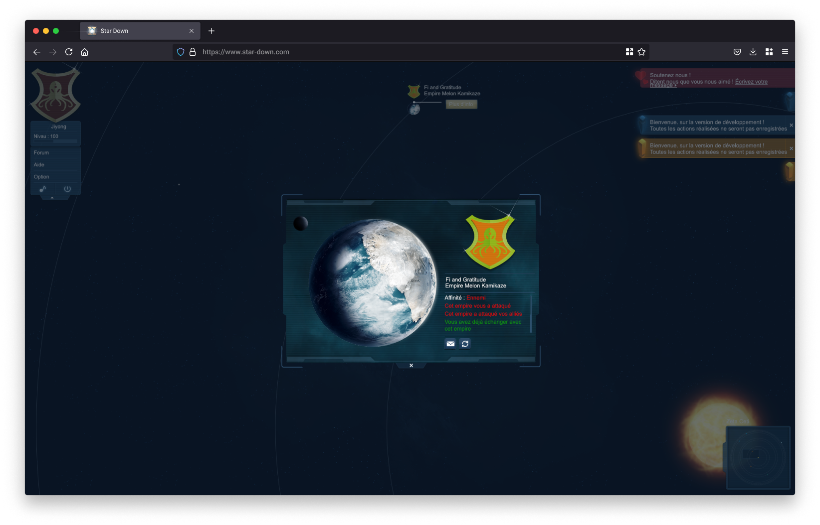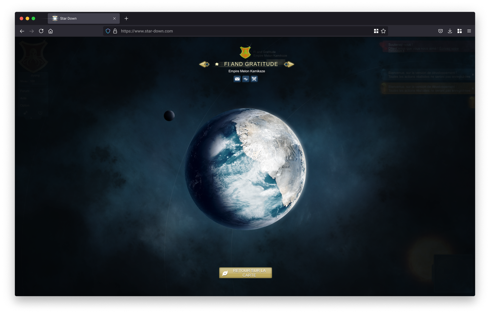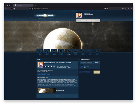 À la création du compte, une première étape permettait à l’utilisateur de personnaliser son empire à travers le nom du dirigeant, les caractéristiques de la planète initiale et la composition du blason.