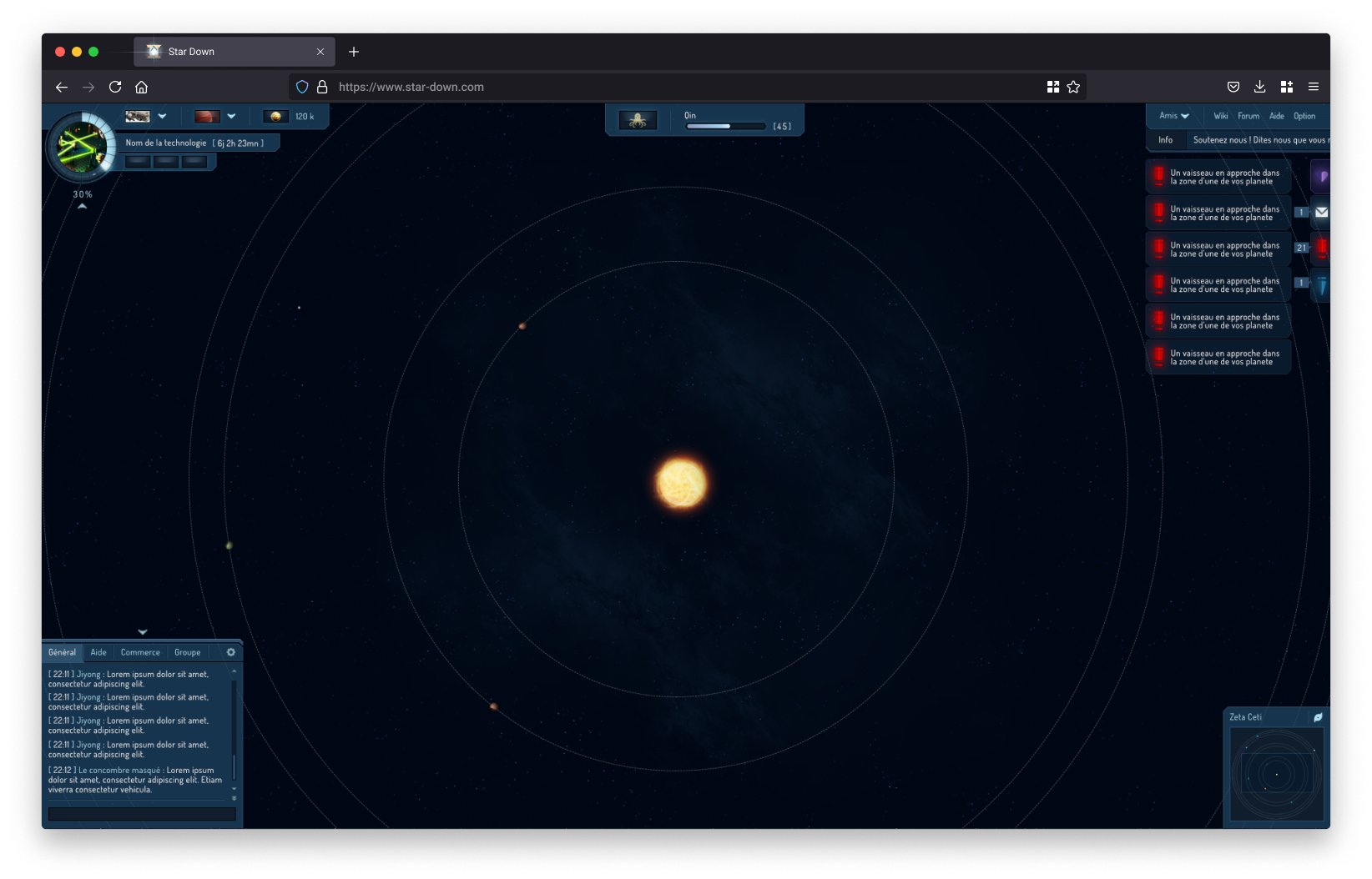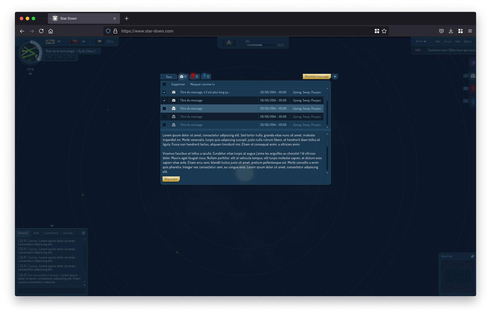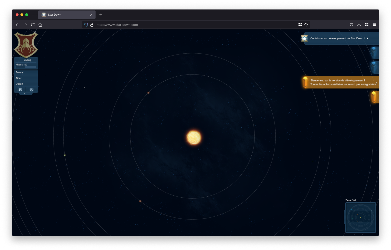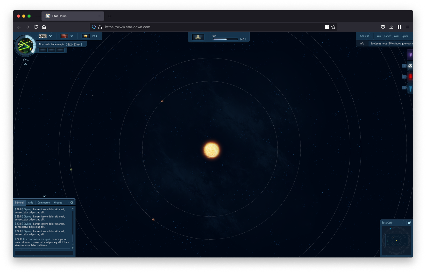 À la création du compte, une première étape permettait à l’utilisateur de personnaliser son empire à travers le nom du dirigeant, les caractéristiques de la planète initiale et la composition du blason.