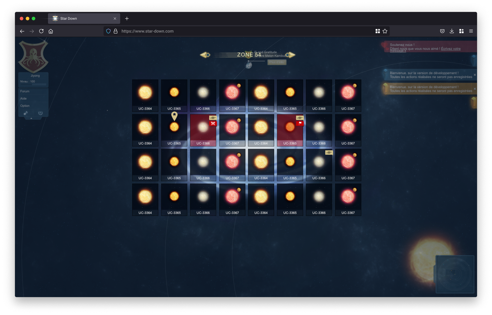 Première version du plateau de jeu, conçue comme une phase d’exploration et de test des mécaniques et de l’interface, servant de base aux itérations suivantes.