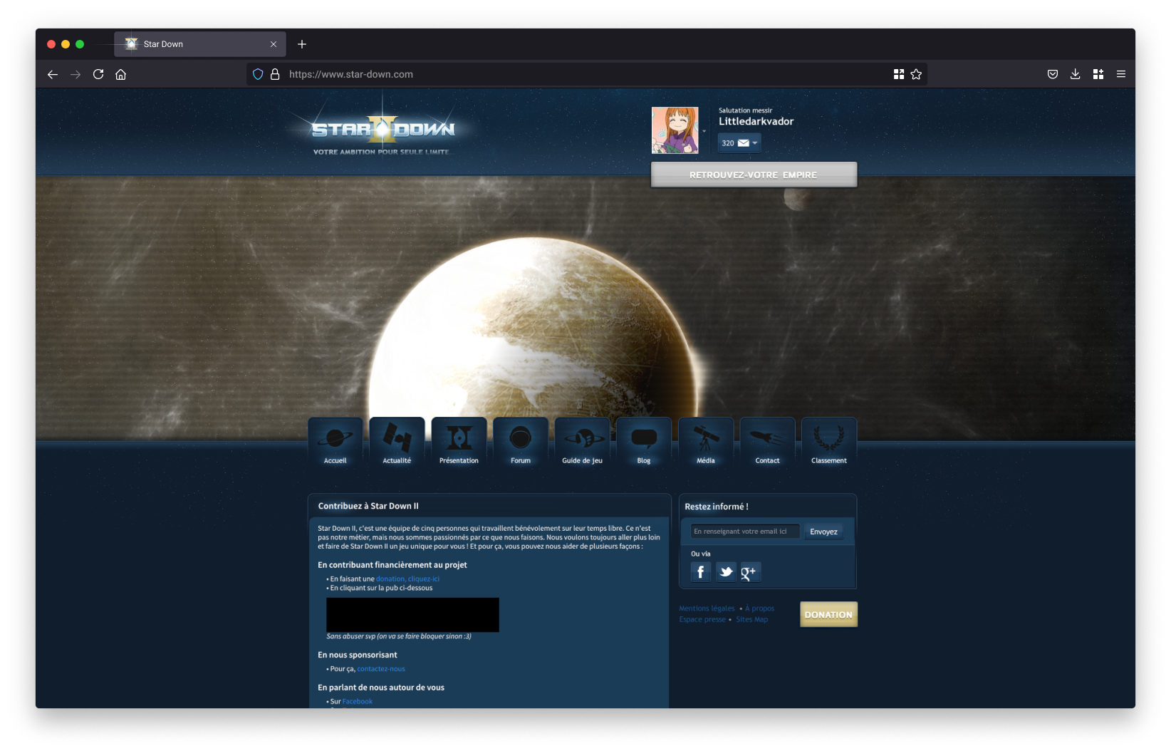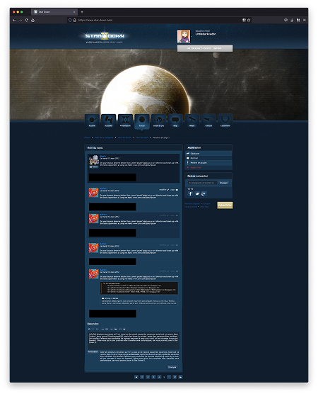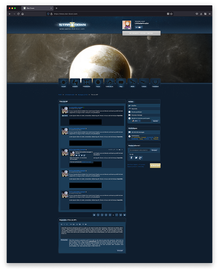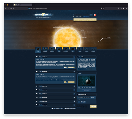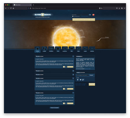 Conception du site institutionnel du jeu, intégrant un forum et plusieurs espaces communautaires tels qu’un blog et un guide de jeu, pensés pour accompagner et fédérer les joueurs.